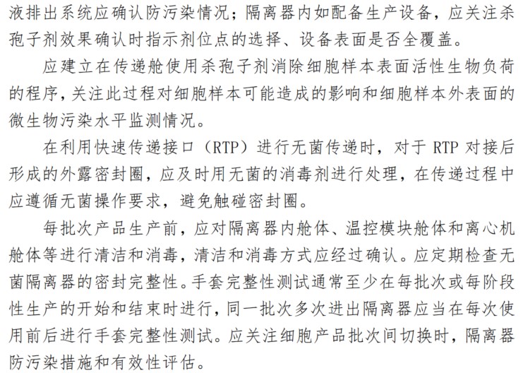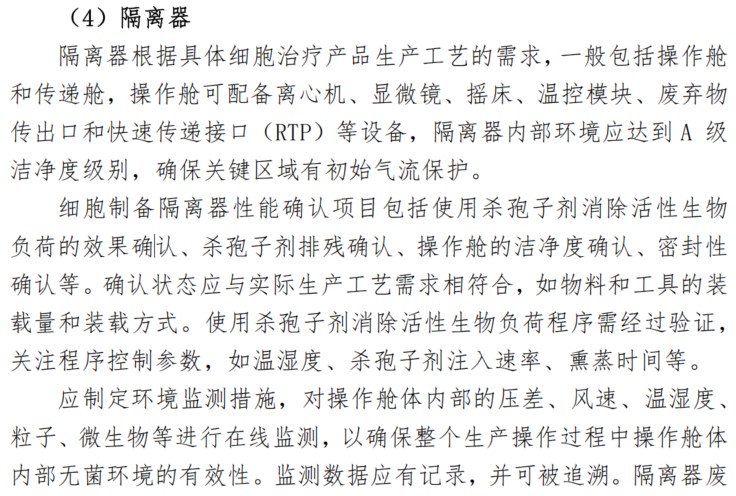 隔離器是細胞治療產(chǎn)品生產(chǎn)的常見(jiàn)設備,是無(wú)菌生產(chǎn)的必要條件,《指南》中對隔離器的要求主要包括以下幾個(gè)方面: